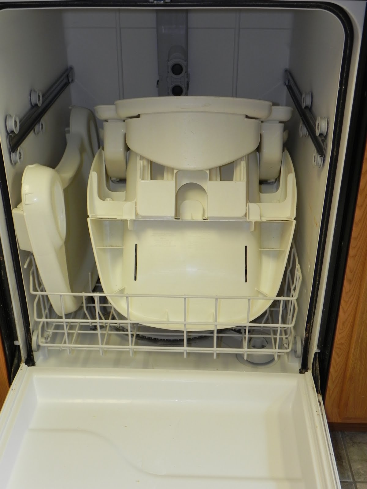 Then she started what we thought was a "sensitive gagger" stage. Sometimes she would just throw up on the most random foods. And throw up EVERYTHING. And then not want to eat anymore (who would?). We started being very careful how much and what she/we put in her mouth. Cleaning up throw-up is not fun. Cleaning a high-chair with it's cracks and crannies full of throw-up is even less fun. I learned really quickly how to get the high-chair clean with little effort: